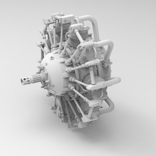 A Jacobs R-755 full kit with exhaust collector ring; individual cylinders available in the 1/32 version. 1/48 and 1/72 likely to be single-piece prints. All will have integrated ignition wires.